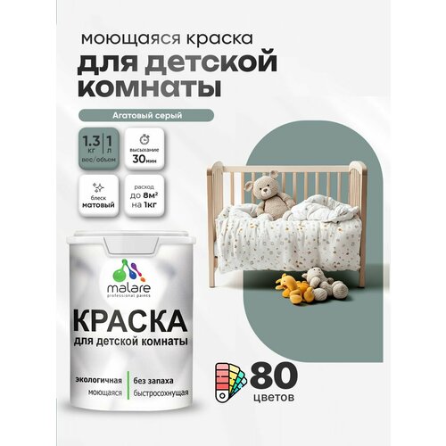 Краска акриловая (АК) Malare Краска Malare интерьерная для детской комнаты, для стен и обоев, для потолка, акриловая без запаха моющаяся матовая, агатовый (1л - 1.3кг) матовая агатовый 1 л 1.3 кг