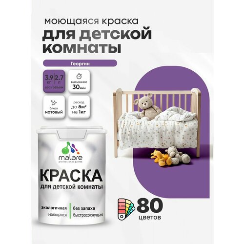 Краска акриловая (АК) Malare Краска Malare интерьерная для детской комнаты, для стен и обоев, для потолка, акриловая без запаха моющаяся матовая, георгин (2.7л - 3.9кг) матовая георгин 2.7 л 3.9 кг