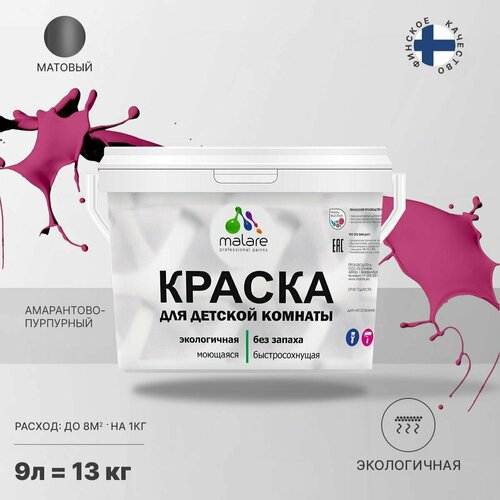 Краска Malare интерьерная для детской комнаты, для стен и обоев, для потолка, акриловая без запаха моющаяся матовая, амарантово-пурпурный (9л - 13кг)