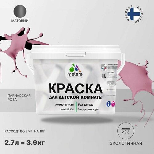 Краска Malare интерьерная для детской комнаты, для стен и обоев, для потолка, акриловая без запаха моющаяся матовая, парнасская роза (2.7л - 3.9кг)