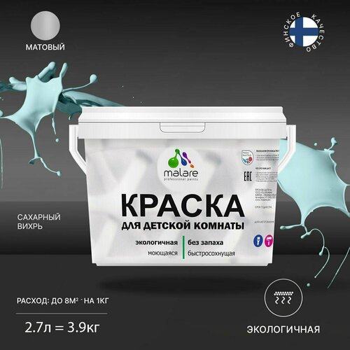Краска Malare интерьерная для детской комнаты, для стен и обоев, для потолка, акриловая без запаха моющаяся матовая, сахарный вихрь (2.7л - 3.9кг)