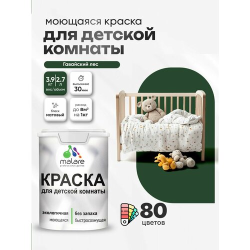 Краска акриловая (АК) Malare Краска Malare интерьерная для детской комнаты, для стен и обоев, для потолка, акриловая без запаха моющаяся матовая, мичиган (9л - 13кг) матовая мичиган 9 л 13 кг