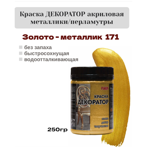 Краска-колер Декоратор акриловая быстросохнущая Palizh Золото металлик 0,25кг