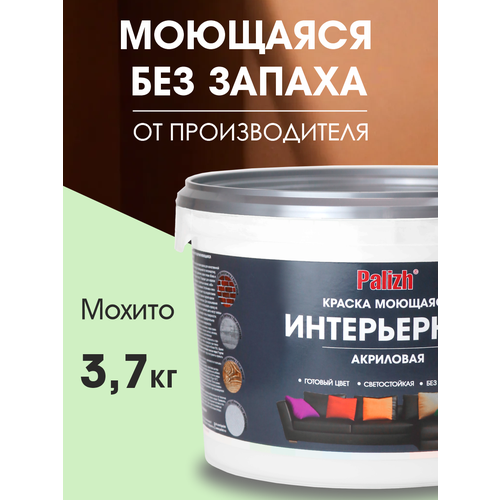 Краска акриловая интерьерная моющаяся цветная "Palizh" (3,7 кг), мохито