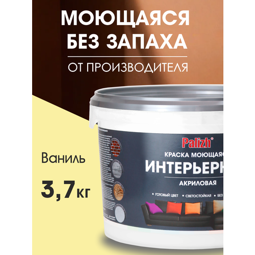 Краска акриловая интерьерная моющаяся цветная "Palizh" (3,7 кг), ваниль