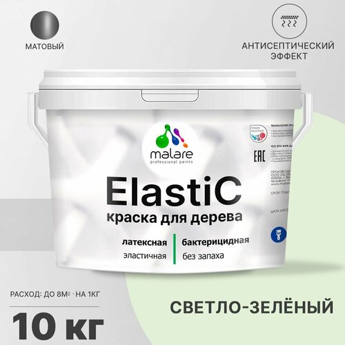 Краска Elastic для деревянных поверхностей, для внутренних и наружных работ, с антисептическим эффектом, матовая, светло-зеленый, 10 кг.