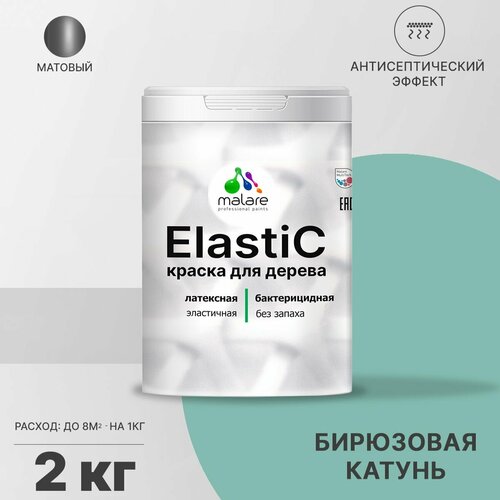 Краска Elastic для деревянных поверхностей, для внутренних и наружных работ, с антисептическим эффектом, матовая, бирюзовая катунь, 2 кг.