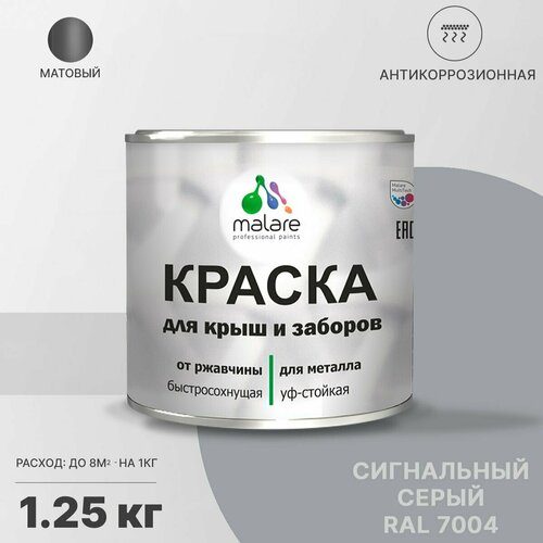 Краска Malare для металлического забора, для крыши из металла, для металлочерепицы, антикоррозионная, матовый, сигнальный серый, 2,5 кг.