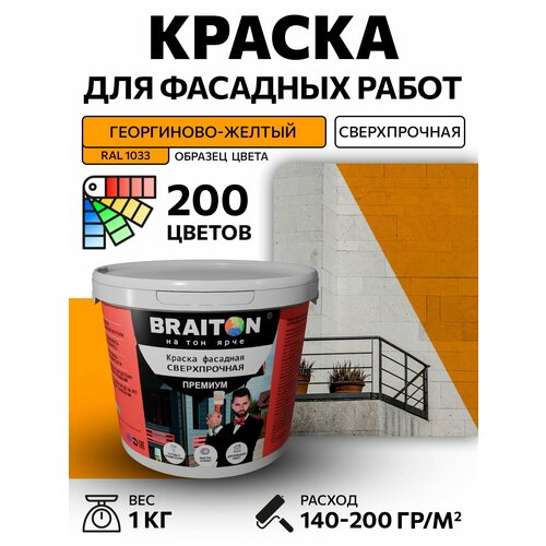 Краска ВД фасадная BRAITON Премиум Сверхпрочная 1 кг. Цвет Георгиново-желтый RAL 1033