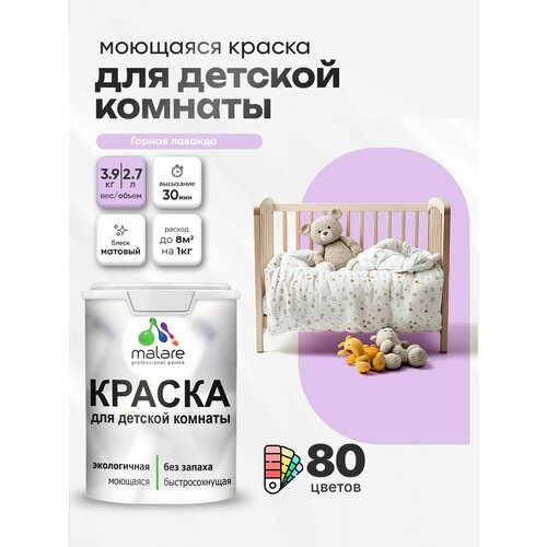 Краска акриловая (АК) Malare Краска Malare интерьерная для детской комнаты, для стен и обоев, для потолка, акриловая без запаха моющаяся матовая, горная лаванда (2.7л - 3.9кг) матовая горная лаванда 2.7 л 3Краска акриловая (АК) Malare Краска Malare интерьерная для детской комнаты, для стен и обоев, для потолка, акриловая без запаха моющаяся матовая, масло тмина (2.7л - 3.9кг) матовая масло тмина 2.7 л 3.9 кг