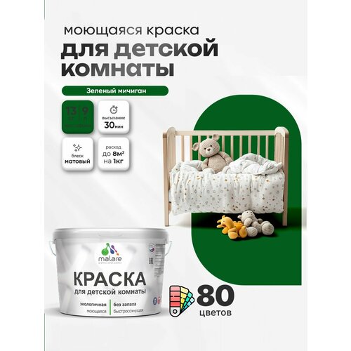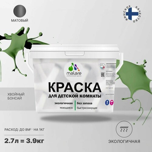 Краска Malare интерьерная для детской комнаты, для стен и обоев, для потолка, акриловая без запаха моющаяся матовая, хвойный бонсай (2.7л - 3.9кг)
