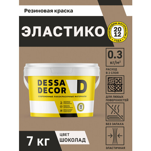 Краска резиновая трещиностойкая DESSA DECOR Эластик 7 кг, цвет коричневый / шоколад