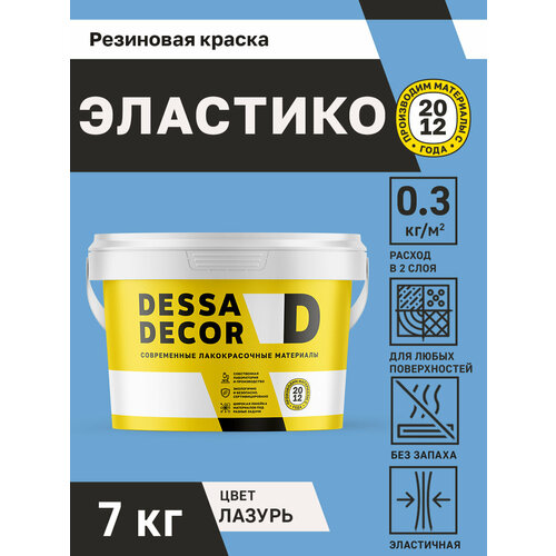 Краска резиновая трещиностойкая DESSA DECOR Эластик 7 кг, цвет лазурный