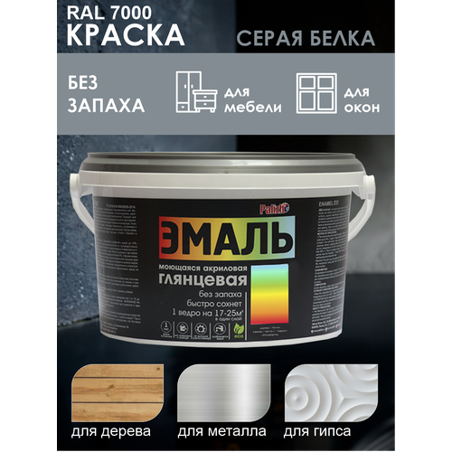 Краска эмаль акриловая глянцевая "Palizh" (2,5 кг), серая белка RAL 7000