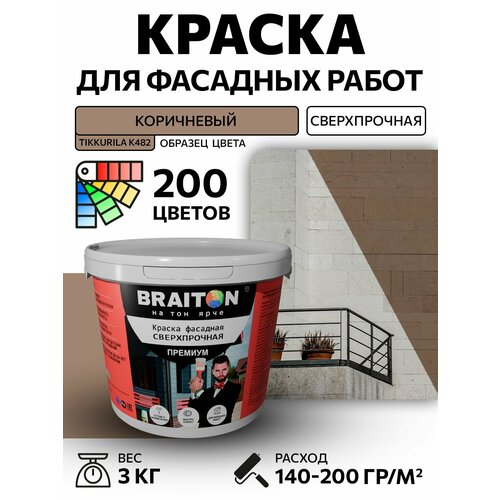 Краска ВД фасадная BRAITON Премиум Сверхпрочная 3 кг. Цвет Коричневый (Tikkurila K 482)