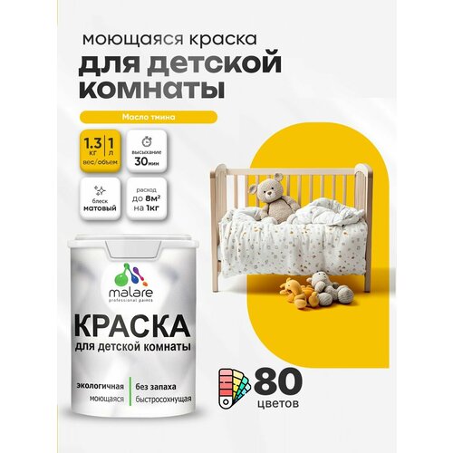 Краска акриловая (АК) Malare Краска Malare интерьерная для детской комнаты, для стен и обоев, для потолка, акриловая без запаха моющаяся матовая, масло тмина (1л - 1.3кг) матовая масло тмина 1 л 1.3 кг
