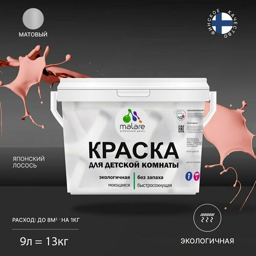Краска Malare интерьерная для детской комнаты, для стен и обоев, для потолка, акриловая без запаха моющаяся матовая, японский лосось (9л - 13кг)