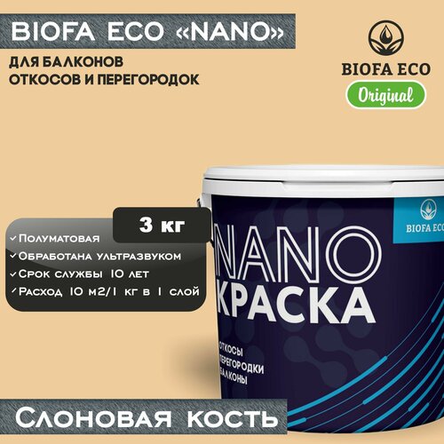 Краска BIOFA ECO NANO для балконов, откосов и перегородок, цвет слоновая кость, 3 кг