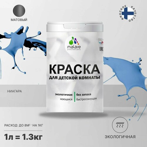 Краска Malare интерьерная для детской комнаты, для стен и обоев, для потолка, акриловая без запаха моющаяся матовая, ниагара (1л - 1.3кг)