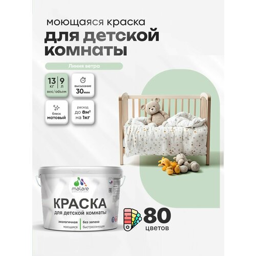 Краска акриловая (АК) Malare Краска Malare интерьерная для детской комнаты, для стен и обоев, для потолка, акриловая без запаха моющаяся матовая, линия ветра (9л - 13кг) матовая линия ветра 9 л 13 кг