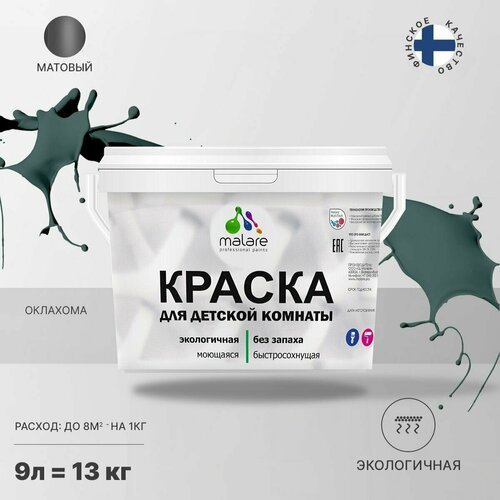 Краска Malare интерьерная для детской комнаты, для стен и обоев, для потолка, акриловая без запаха моющаяся матовая, оклахома (9л - 13кг)