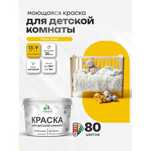 Краска акриловая (АК) Malare Краска Malare интерьерная для детской комнаты, для стен и обоев, для потолка, акриловая без запаха моющаяся матовая, масло тмина (9л - 13кг) матовая масло тмина 9 л 13 кг