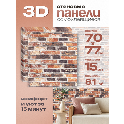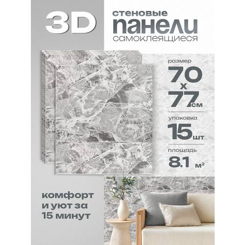 Самоклеющиеся 3D панели HOMFESK для стен, влагостойкие, 70х77 см, 15 шт