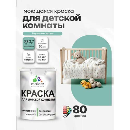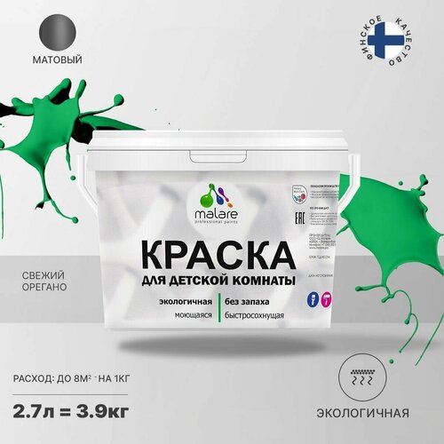Краска Malare интерьерная для детской комнаты, для стен и обоев, для потолка, акриловая без запаха моющаяся матовая, свежий орегано (2.7л - 3.9кг)