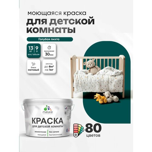 Краска Malare интерьерная для детской комнаты, для стен и обоев, для потолка, акриловая без запаха моющаяся матовая, ниагара (1л - 1.3кг)