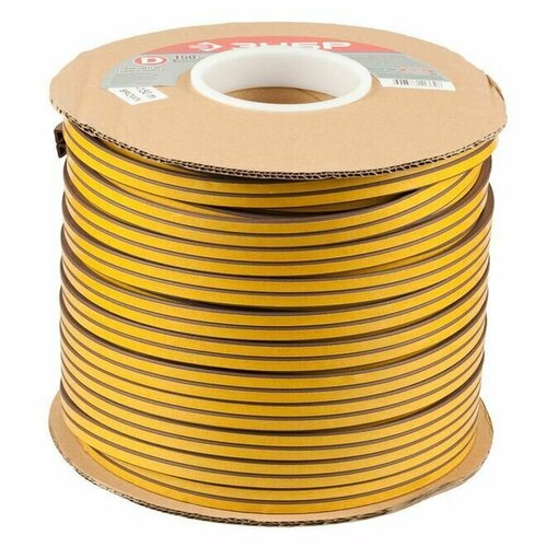 Уплотнитель резиновый самоклеящийся 150м, профиль D, размер 9х8мм, коричневый ЗУБР