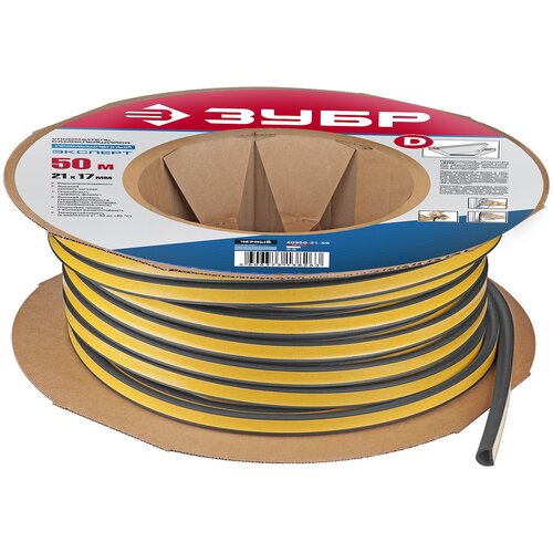 ЗУБР 16 м, профиль ″D″, коричневый, резиновый, самоклеящийся уплотнитель (40930-016)