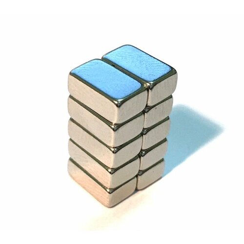 Неодимовый магнит 10 х 6 х 4 мм, блок, N38, никель - 10 штук