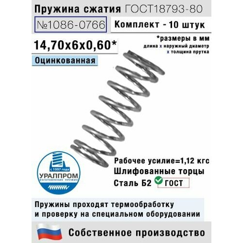 Пружина сжатия 1086-0766, L 14,70 мм; d 0,60 мм; D 6 мм ГОСТ 18793-80 (комплект 10 штук)