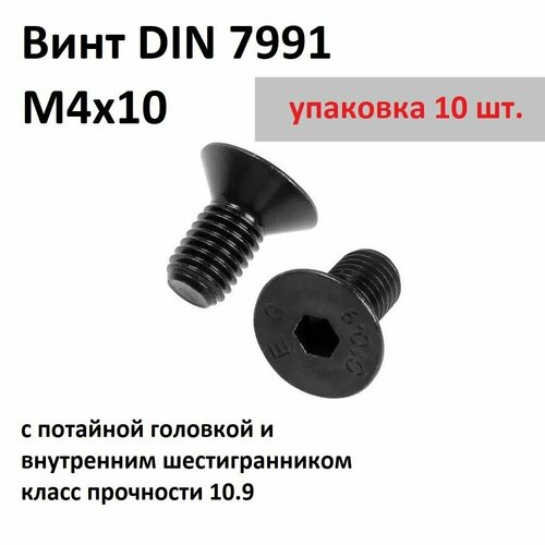 Винт DIN 7991 М4х10 с потайной головкой и внутренним шестигранником под ключ, без покрытия, класс прочности 10.9