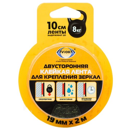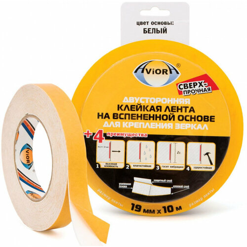 Aviora Двусторонняя клейкая лента на вспененной основе, 25 мм х 10 м, для крепления зеркал, белая