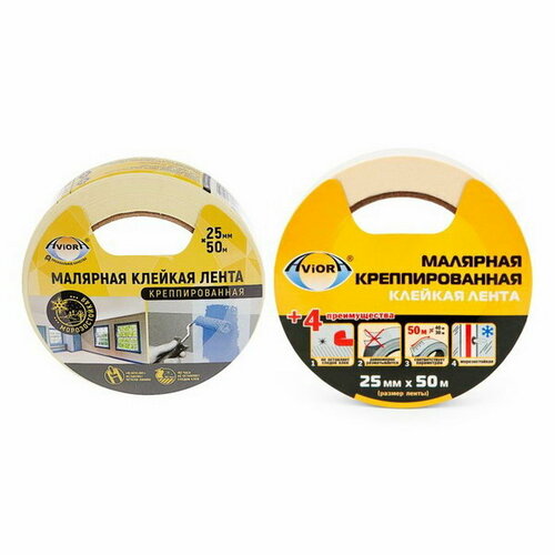 Цены на Крепированная бумажная малярная клейкая лента AVIORA 19 мм, 50 м 2 шт. белый в г. Воронеж