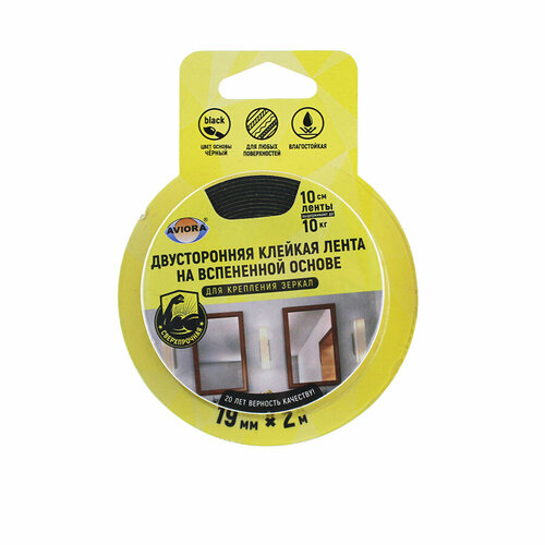 Клейкая лента двусторонняя Aviora, 19мм*2м, на вспененной основе, сверхпрочная