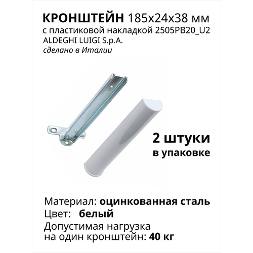 Кронштейн с пластиковой накладкой ALDEGHI LUIGI SpA 185х24х38 мм, оцинкованный, цвет: белый 40 кг, 2 шт, 2505PB20_U2