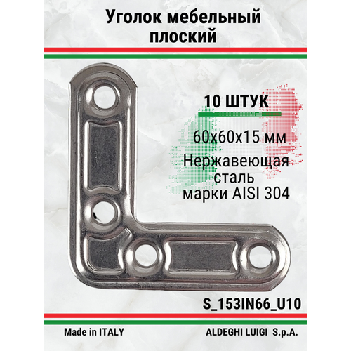 Уголок мебельный плоский 60х60х15х1,5 мм, нержавеющая сталь, в комплекте 10 штук