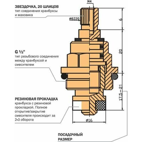 Кран-букса 1/2" керамика 20 шлицов угол поворота 90гр Melodia Della Vita