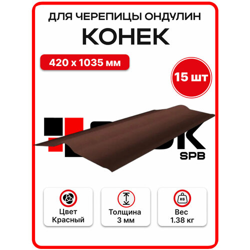Конек для черепицы Ондулин цвет Красный 420х1035мм - 15шт/уп