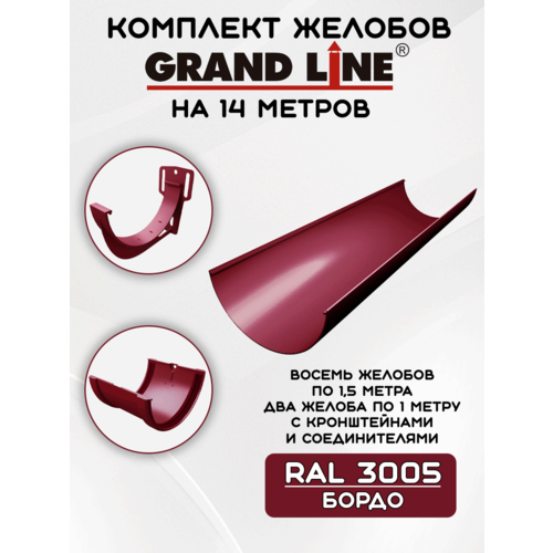 Комплект желобов водостока на 14 метров Grand Line бордового цвета (120мм/90мм) RAL 3005