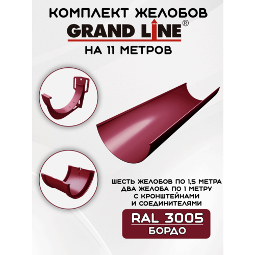 Комплект желобов водостока на 11 метров Grand Line бордового цвета (120мм/90мм) RAL 3005