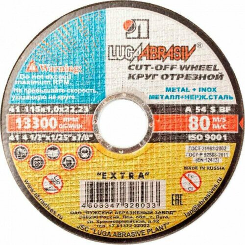 Круг отрезной 115х1,2х22 мет. и нерж (Луга)