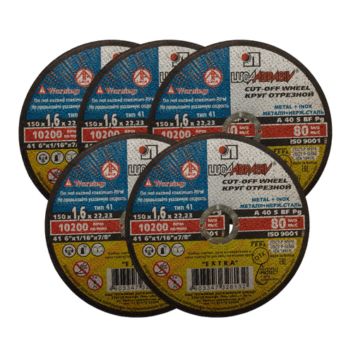 Круг отрезной 150*1,6*22 A 40 мет.+нерж. ex. LUGAABRASIV (комплект 5 шт)