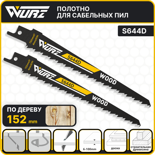 Полотно по дереву S644D для сабельной пилы 152мм (4мм) Wurz