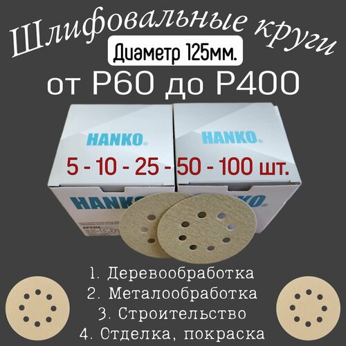 Шлифовальный круг на липучке 125мм Р-80; Hanko; 50 штук.
