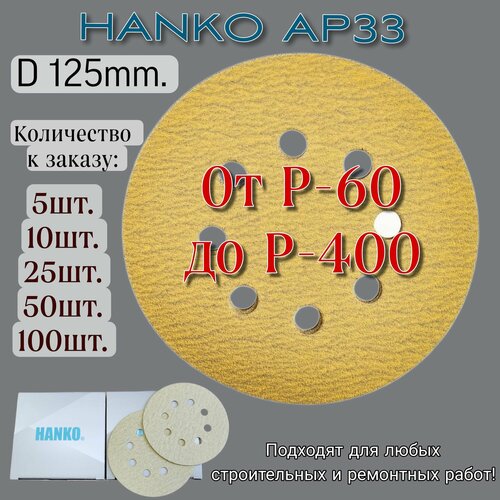 Шлифовальный круг на липучке 125мм Р-320; Hanko; 25 штук.