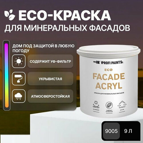 Краска фасадная износостойкая для наружных и внутренних работ PROFIPAINTS ECO FACADE ACRYL 9л, RAL-9005