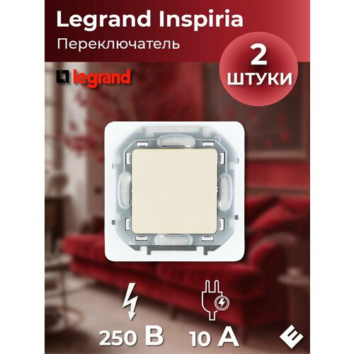 Переключатель одноклавишный IP44 (Слоновая кость) 10AX, 250В, Legrand INSPIRIA (комплект 2шт)